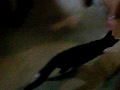 The little black Magic cat actually likes to play fetch! This was towards the end of the session, and that's why he lost interest after only one throw.